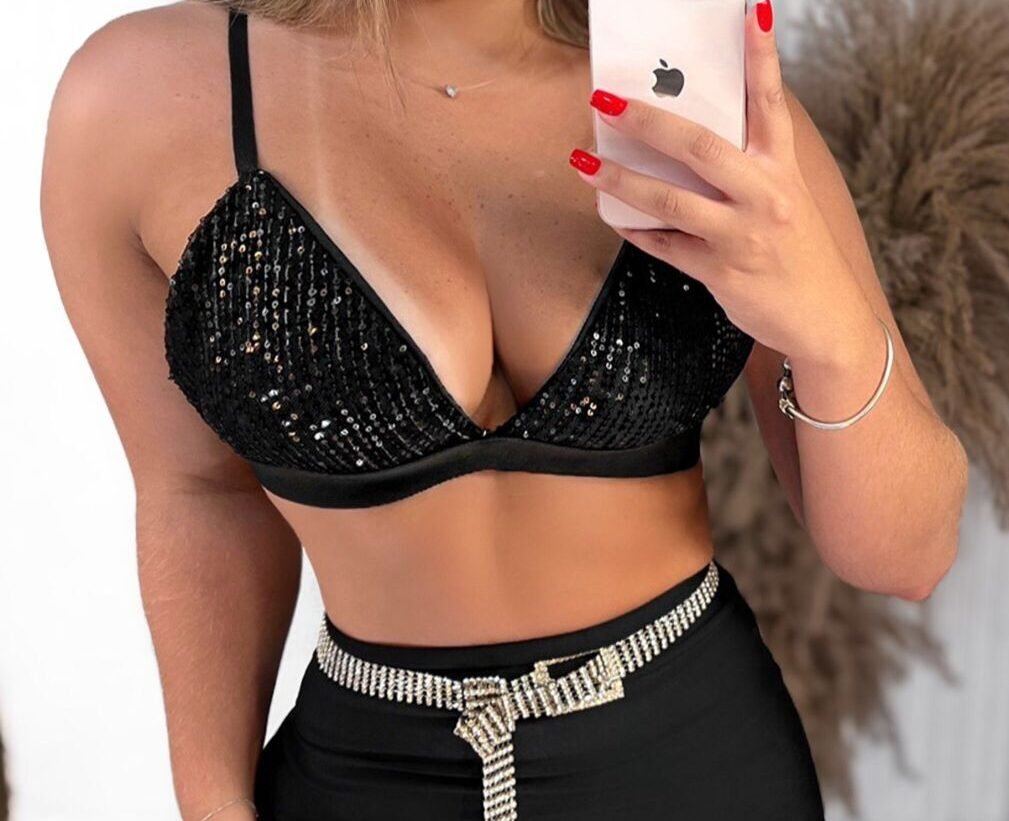 CORSELET FEMININO CROPPED NEOPRENE APLICAÇÕES BRILHO
