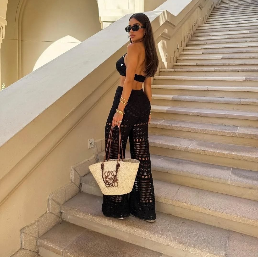 • Calça de crochê com caimento impecável, oferecendo elegância e leveza.