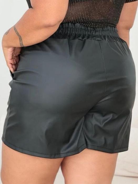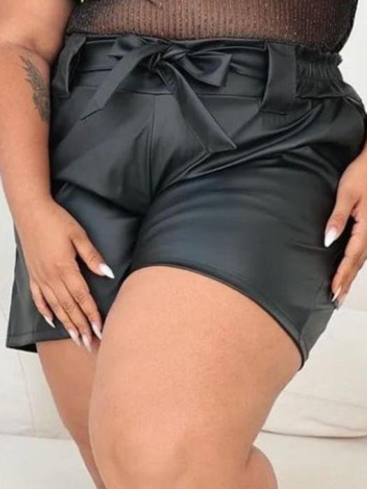 Shorts Plus Size em Couro Fake com Laço – Elegância e Conforto